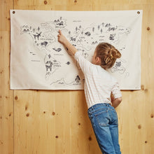 Frábært heimskort fyrir ævintýraþyrst börn! Þau læra um plánetuna, höfin og hin ýmsu dýr sem koma frá mismunandi heimsálfum. Þetta gamaldags skrautlega kort mun efla hugmyndarflug barna og foreldra. Auðvelt að hengja upp.